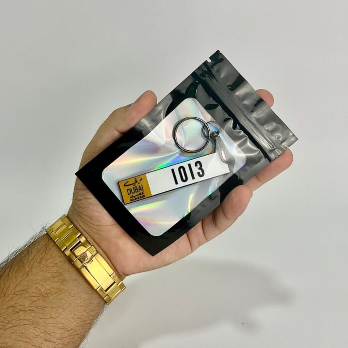 Dubai Classic Design Number Plate Keychain – the perfect gift for car lovers or anyone who loves a personalized touch. Add your name to one side and a UAE plate design on the other.
