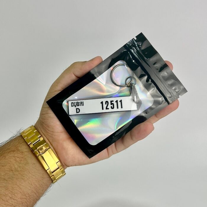 Dubai New Design Number Plate Keychain – the perfect gift for car lovers or anyone who loves a personalized touch. Add your name to one side and a UAE plate design on the other.